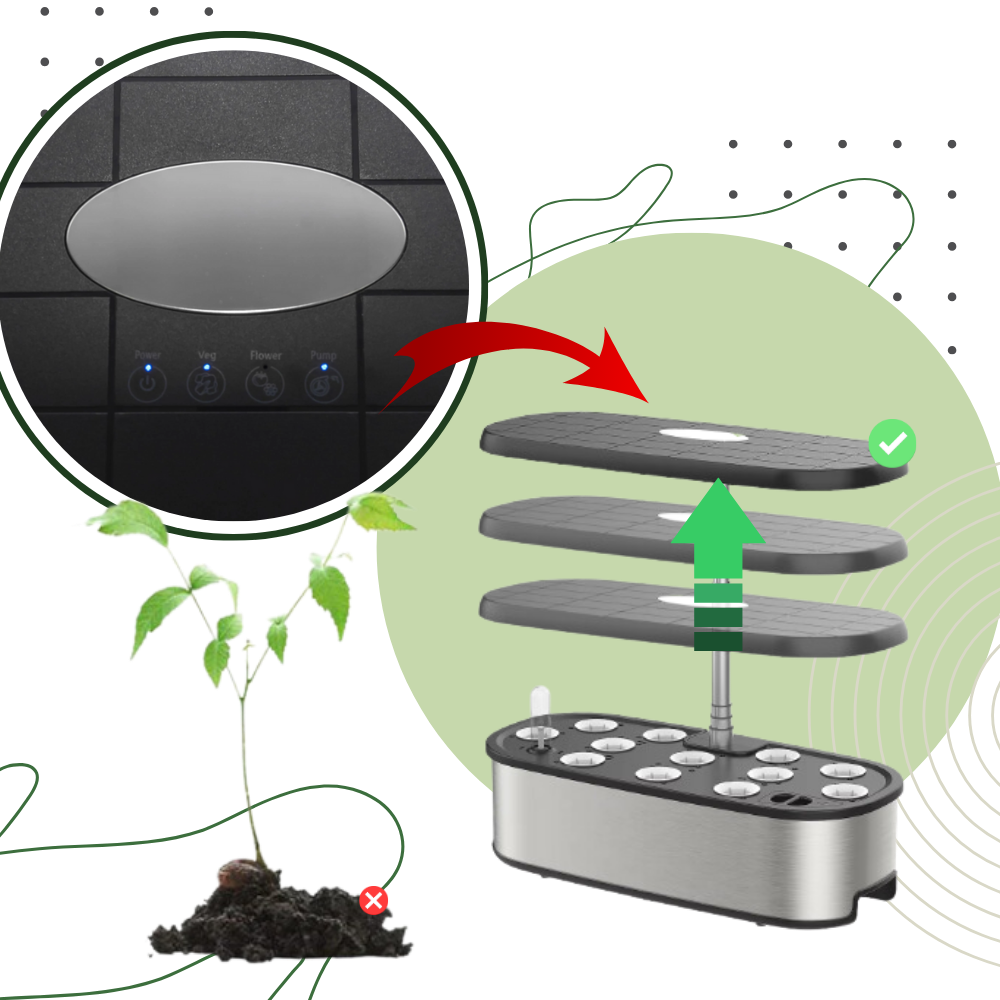 Gardening should be a joy, not a chore, and the 12 Plants Pods Hydroponic Garden makes this a reality with its intuitive, easy-to-use control panel. Whether you're a seasoned gardener or a complete novice, the user-friendly controls allow you to effortlessly manage your indoor garden. With just a few simple buttons, you can adjust the lighting, pump, and growth settings to perfectly match the needs of your plants at any stage of their development. The system is designed to take the guesswork out of hydroponics, making it accessible to everyone. This ease of use not only enhances the gardening experience but also ensures that your plants are always in the best possible environment for thriving, without requiring constant monitoring or manual adjustments.