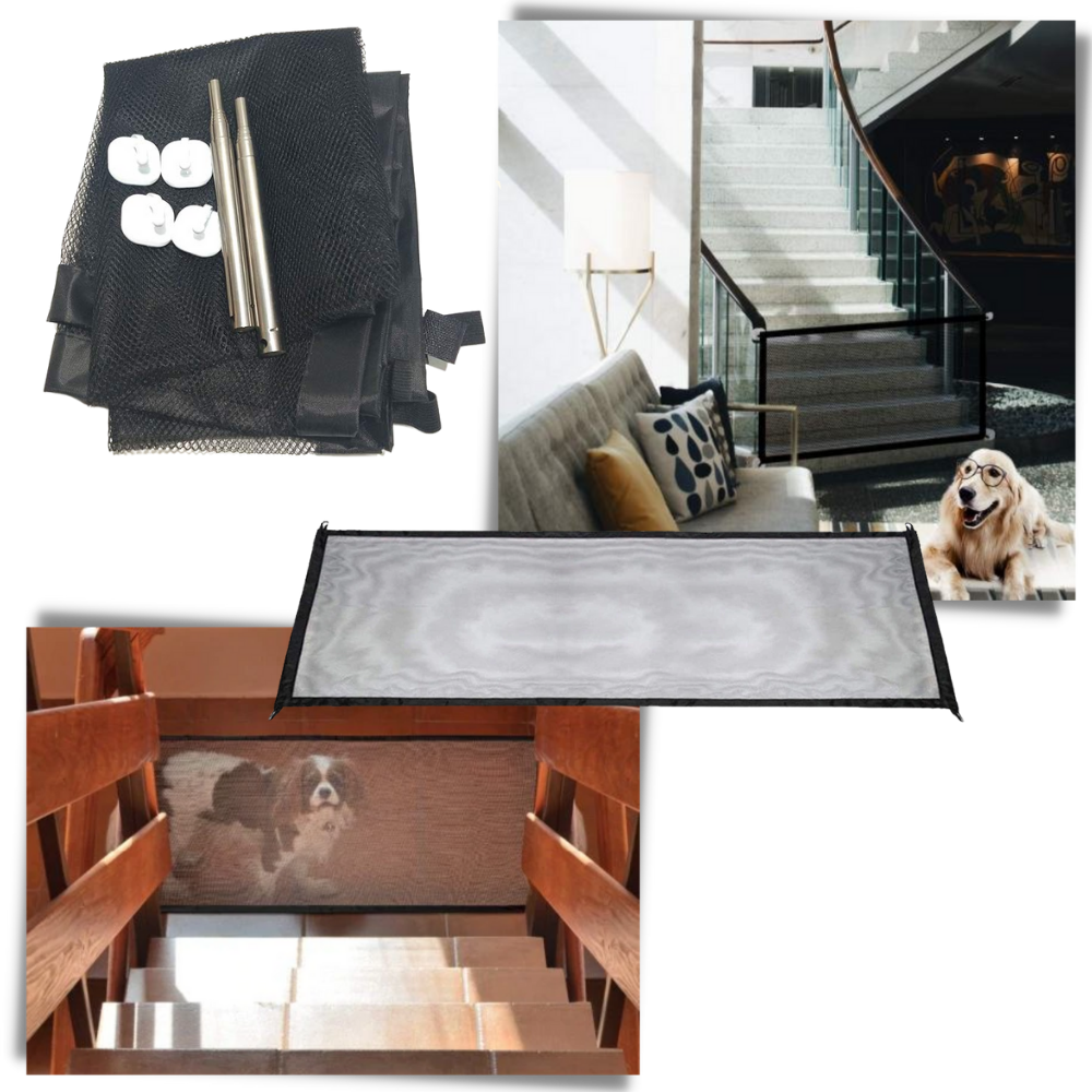 Instead of making permanent, somewhat uncomfortable changes to your house, why not opt for a dog fence option that allows you to fix and remove barriers at will? This net is strong enough to prevent pets from going past when you set it up, and you can easily unhook it when you want to pass. This helps to make sure it will only be a minor cause of obstruction, one that is easy to fix and remove as needed!