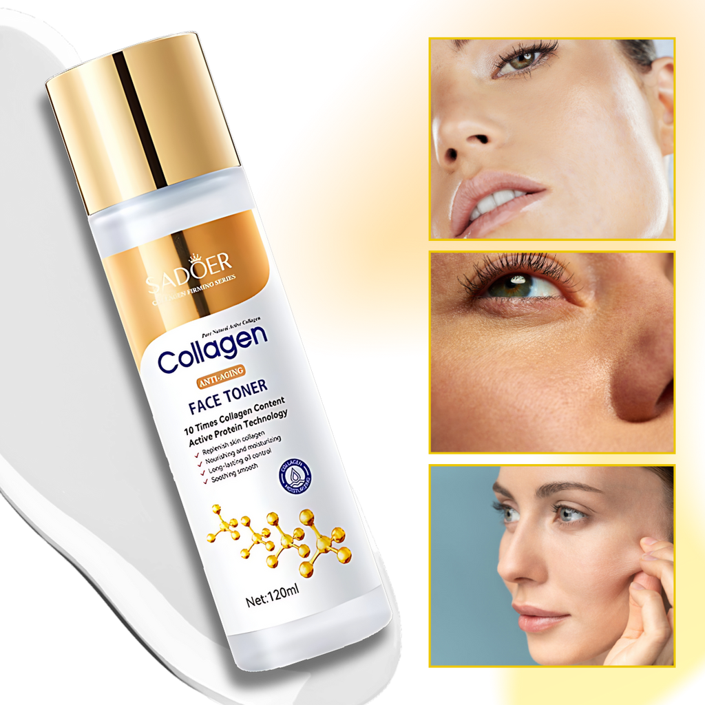 Loss of elasticity is one of the most common concerns associated with aging skin. The Anti-Aging Brightening Collagen Toner addresses this issue head-on by boosting your skin’s elasticity, thanks to its expertly formulated blend of collagen and other active ingredients. This toner works to restore the skin’s natural bounce and firmness, helping to lift and contour your facial features. Over time, you’ll notice your skin becoming more toned and supple, as the toner promotes the rebuilding of the skin's structural network. Whether you’re dealing with sagging skin or simply want to maintain a firm, youthful appearance, this toner provides the targeted care your skin needs.