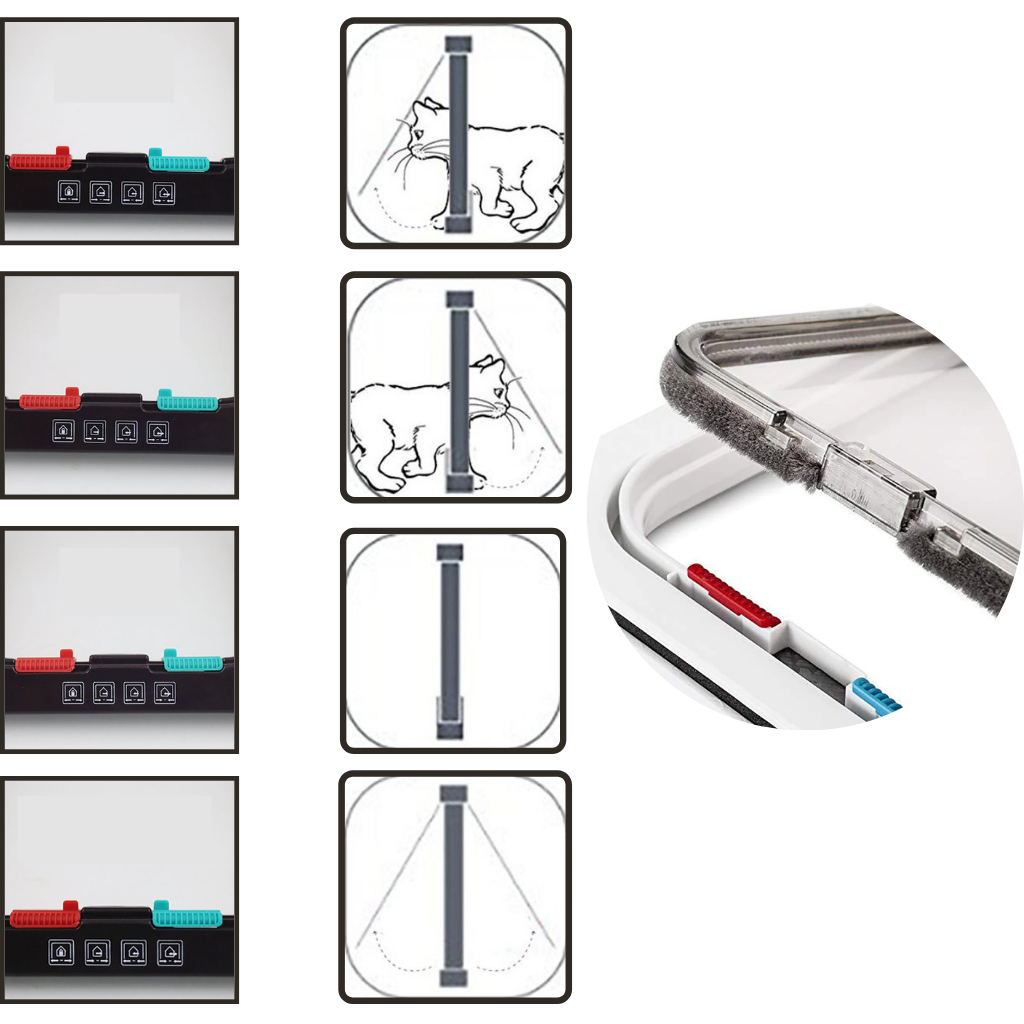 For your security, this flap door has a 4-way locking system to give you peace of mind. It comes in 4 opening and locking modes: fully-locked, free access, outward access only, and inward access only. Its red and green tabs act like switches and come with guide diagrams so you can determine which manner you want it to lock or open.