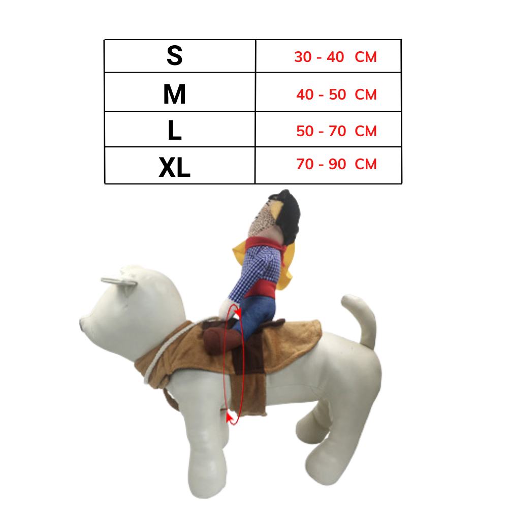The original, funny cowboy design is a great idea if you want to add a special touch to a party. It can be also used during birthday or Christmas parties. You can even dress up your cat with it if your pet is a cat rather than a dog! The cowboy costume will surely steal everybody’s attention. Thanks to its versatile design, it’s great for any occasion. Enjoy!