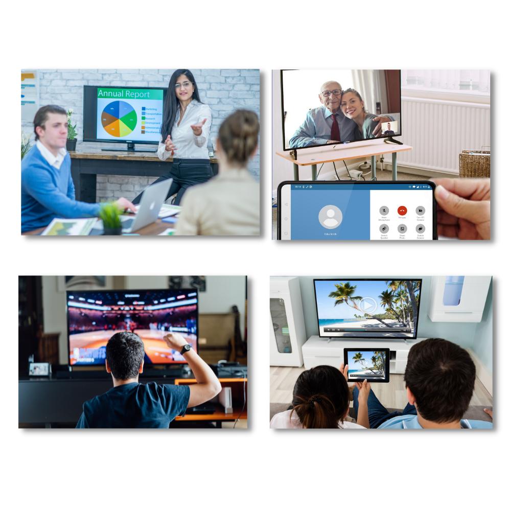 Or you could use it to show important graphics and documents during a presentation at the office. You could even enjoy a video conference and see the other participants clearly on a bigger screen!