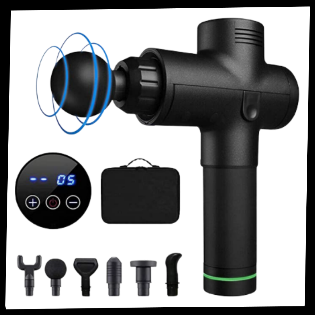 High-Speed Vibration Massage Gun - 6 Replaceable Massage Heads - Ozayti