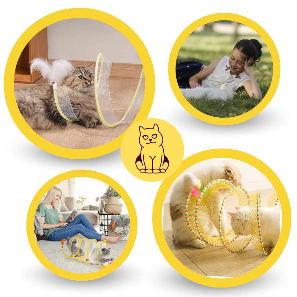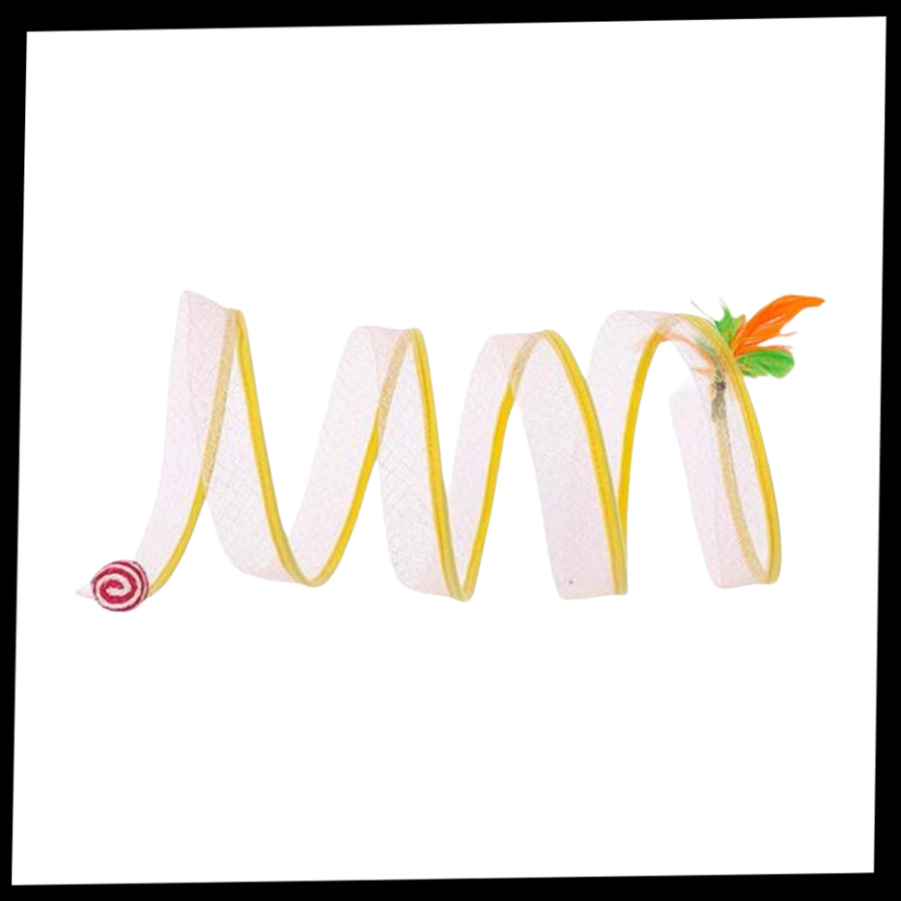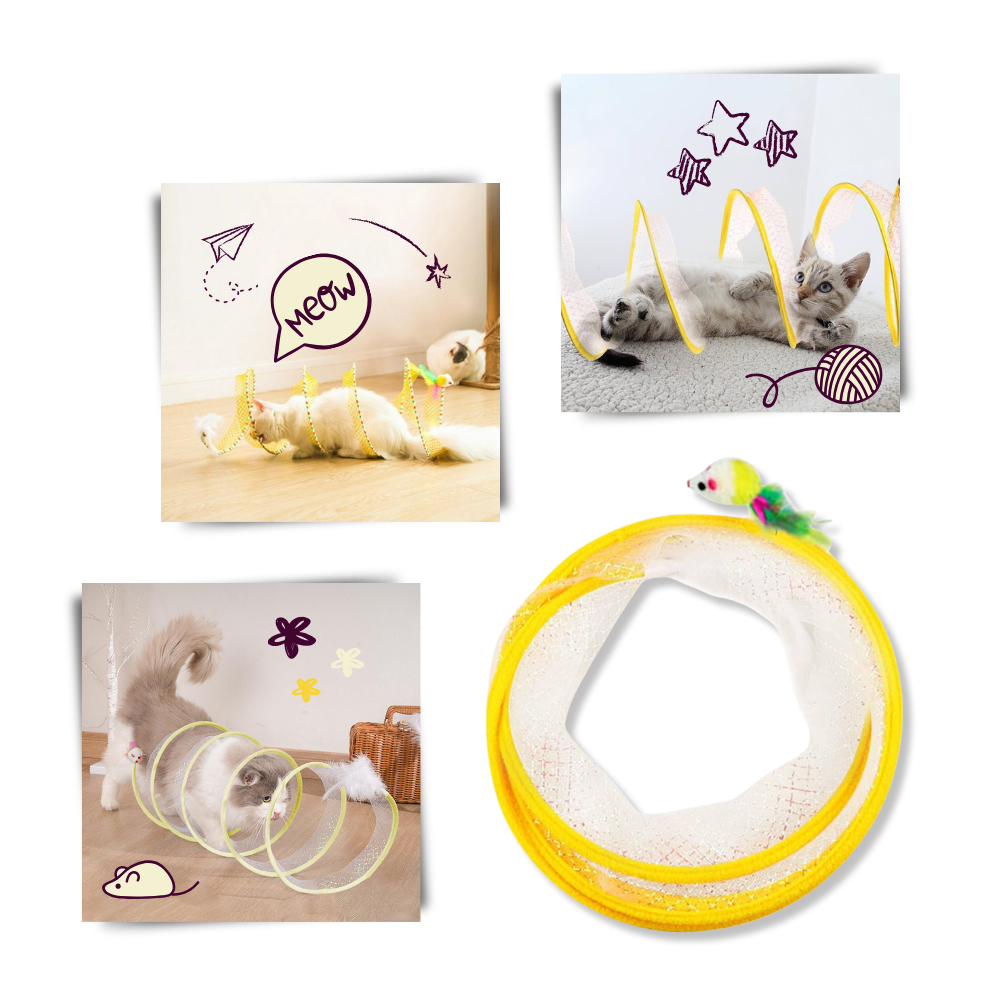 To address the common issue of feline inactivity and its associated problems, the Interactive Compact Cat Tunnel emerges as an innovative solution. Its unique spiral design and playful hanging toys at each end ignite your cat's curiosity and playfulness, offering an interactive experience that counters boredom effectively. This toy is tailored to cater to various feline playstyles, ensuring continuous engagement and providing a stimulating environment that keeps your cat active, entertained, and mentally stimulated, thus fostering a joyful and energetic household pet.