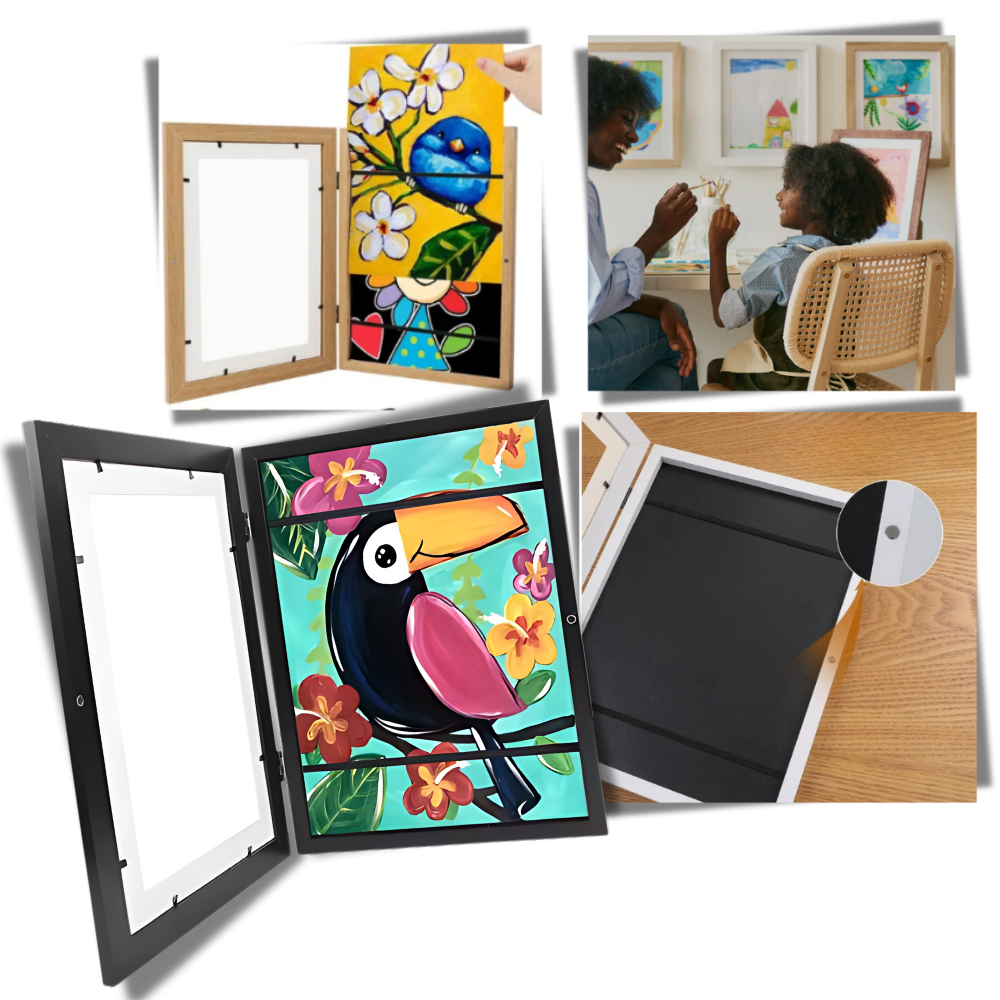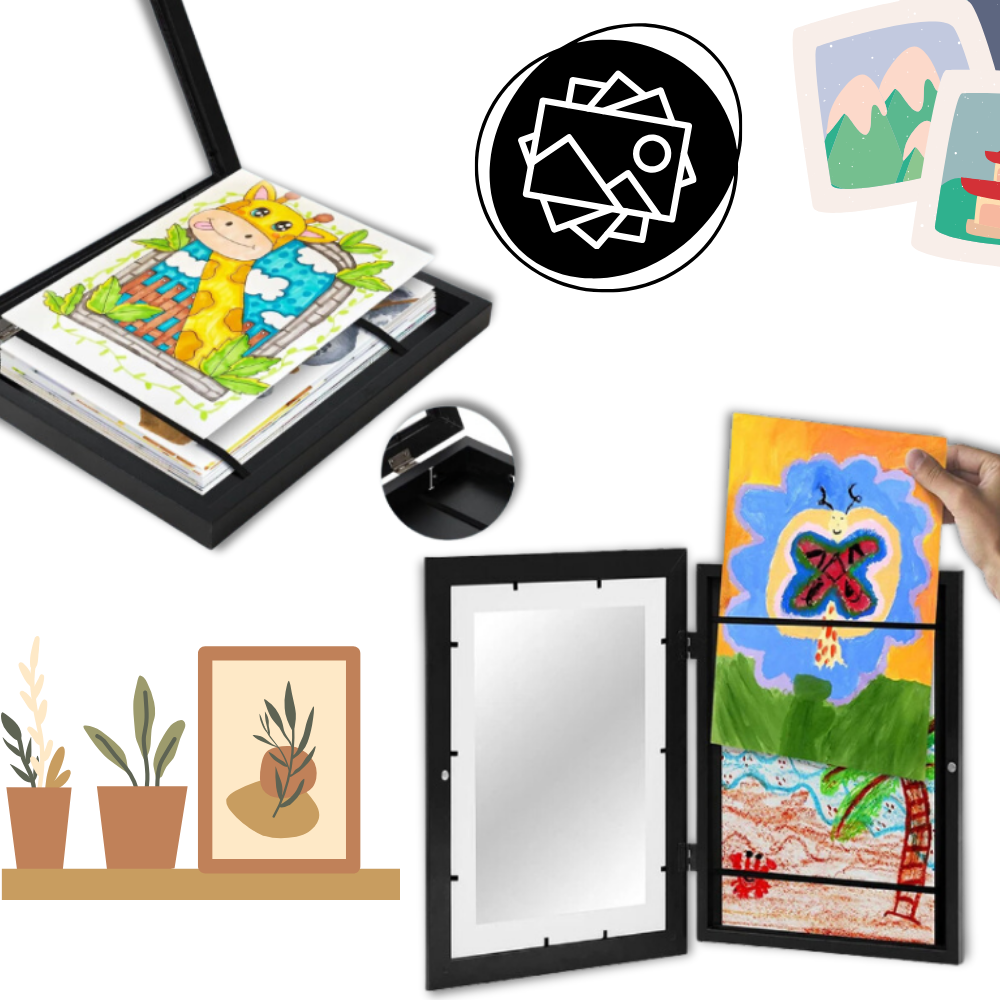 These frames are genius! I’ve turned my kid’s artwork into a rotating display of masterpieces. They open up like a book and swapping drawings takes seconds. Looks neat and makes them feel so proud!