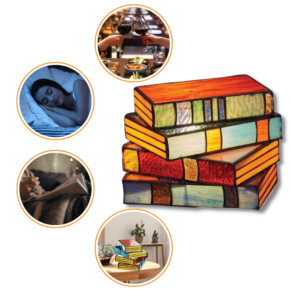The Timeless Stacked Books Lamp is a masterclass in versatility, seamlessly blending into a multitude of environments and decor styles. Its distinctive design, featuring a stack of books crowned with stained glass, makes it a striking focal point in any room. Whether it's casting a warm glow on your bedside table, adding a touch of whimsy to your home office desk, or creating a welcoming ambiance in your living room, this lamp adapts with ease. Its ability to harmonize with various interior themes, from the classic charm of traditional decor to the dynamic flair of eclectic styles, underscores its universal appeal.