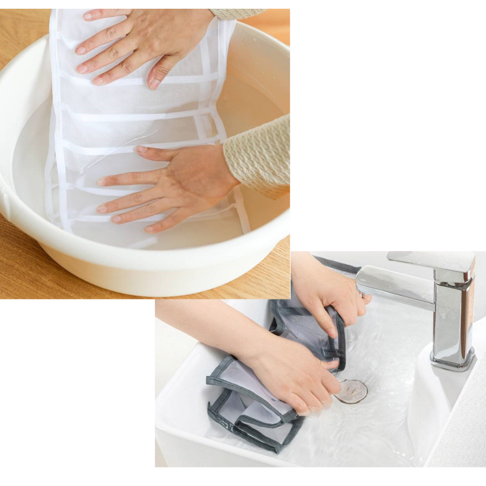 The wardrobe clothes organizer is simple, with a clear design and transparent materials. It will let you see all the content of your wardrobe and easily get what you need without disorganizing the rest of your items of clothing. Keep your clothes well aired and moisture free thanks to the loose mesh texture of this organizer. It’s designed to keep your clothes dry and give them proper ventilation so that they are ready to be used whenever you need them. Keep it neat by washing it with warm water and soap, as it’s easy to clean and will dry quickly - all for your comfort!